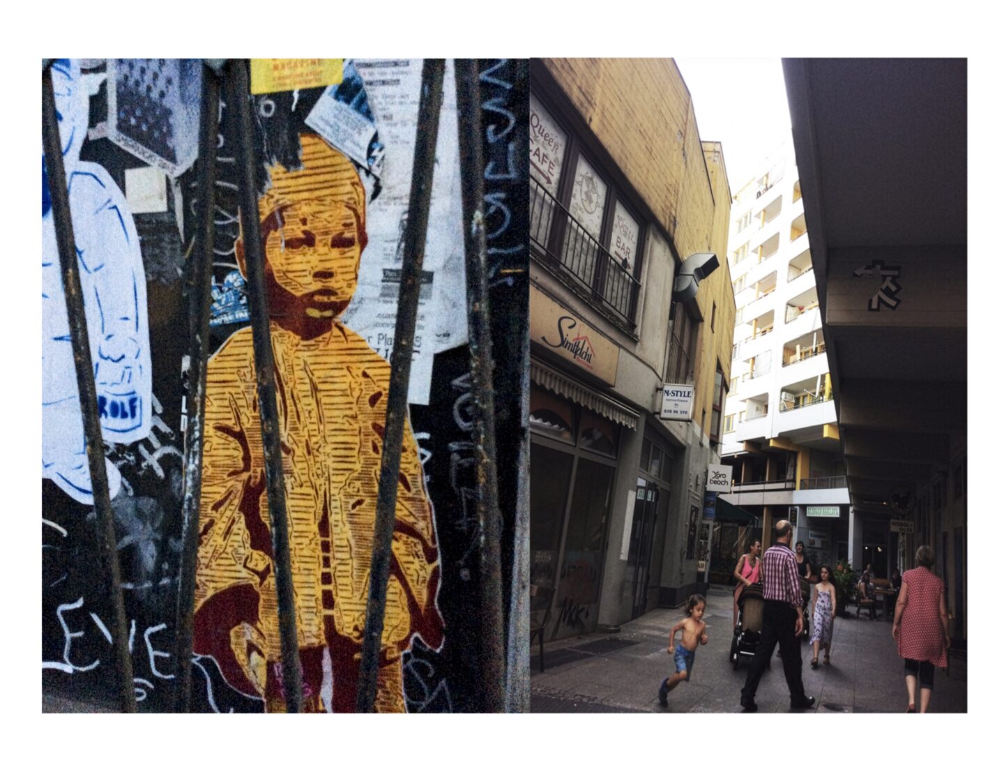 Die neueren, digitalen und meist farbigen Fotografien aus den Fotofilmen „Die Straße als Erzählung“ verlagern den Blick in den öffentlichen Raum. Als Flaneurin richtet Mikesch ihre Aufmerksamkeit auf Straßen, Häuserzeilen, Graffiti, Kinder, Passanten. Das Übersehene wird sichtbar, das Gegenwärtige lesbar. Die Straße erscheint als erzählter Raum, in dem sich politische, soziale und persönliche Spuren überlagern – eine lebendige Gegenwart, die sich fortwährend einschreibt.