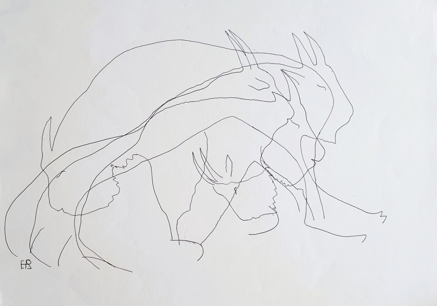 Zeichnerisch arbeitet er ausschließlich mir der Feder – Angesicht zu Angesicht mit dem Tier in der freien Natur. Oft legt er die sich durch die Bewegung verändernden Positionen des Tieres in einer Grafik übereinander. Das Tier steht nicht Modell, sondern ist gänzlich ungebefangen in seinen Bewegungen. Diese Lebendigkeit des Tieres, sowohl dessen Sanftmut als auch Ungestüm möchte Peter Hecht festhalten – wenn auch gerade das „Festhalten“ einer Bewegung kontradiktorisch sind. Durch die Überlagerung von Bewegungsmomenten fängt er das Besondere des Lebewesens ein. Er zwängt es nicht statisch auf Papier, sondern nimmt sich des Wesens, dessen Natürlichkeit und dessen ureigenem Bewegungsdrang an, um ihm künstlerisch gerecht zu werden.